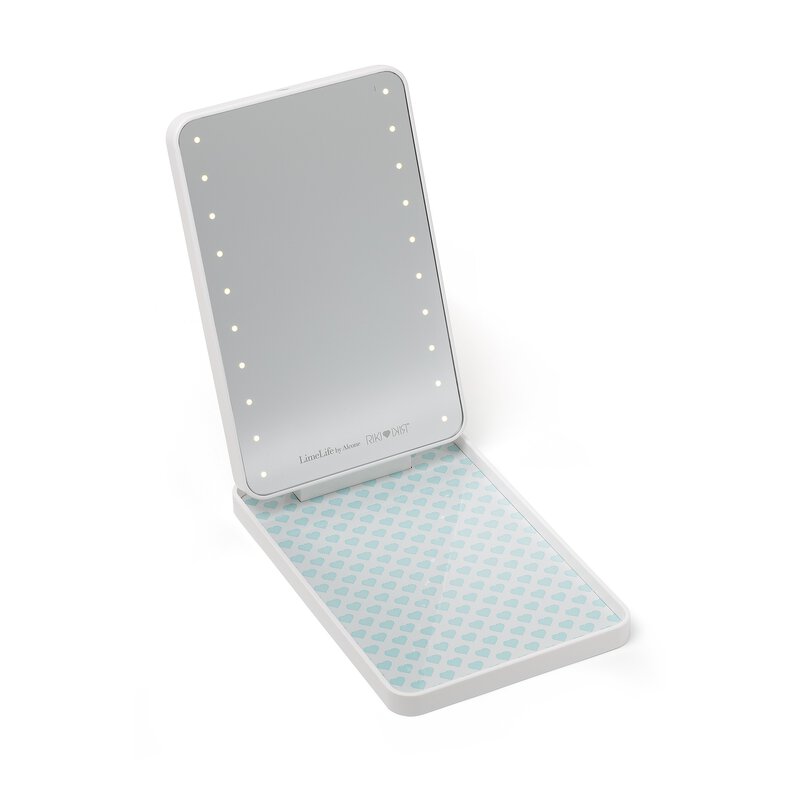 Keep it colorful everywhere you go with this lighted mirror and customizable makeup palette in one. Consolidate your must-have makeup pans in one convenient palette for on the go touchups with perfect lighting! Featuring LED lights, three dimming stages, and a rotating mirror, the RIKI Colorful is the ultimate portable vanity.