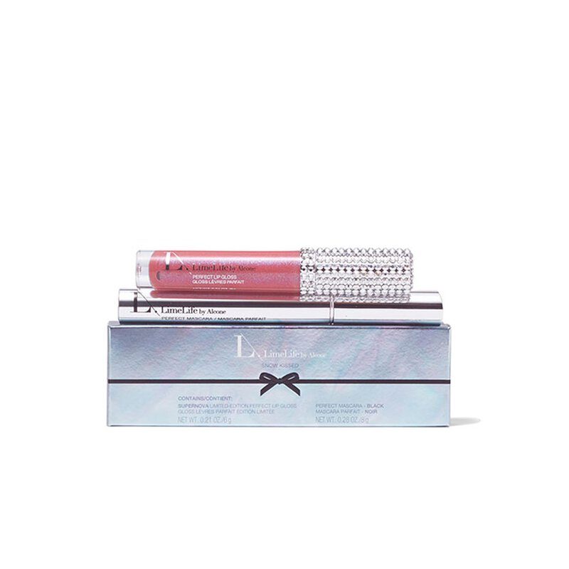 Your holiday-party-approved look! The Snow Kissed Duo includes our best-selling Perfect Mascara in Black and an exclusive shade of Perfect Lip Gloss in Supernova. The festive, rosy gloss with flecks of icy blue will have you singing a love song while making lips appear full, voluminous and healthy.